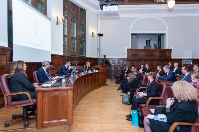 ZAGREB - Predstavnici Hrvatske gospodarske komore sastali su se s njemačkim gospodarskim izaslanstvom na čelu s Odborom njemačkog gospodarstva za istočnu Europu (Ost-Ausschluss) i Udruge za upravljanje lancem opskrbe, nabavu i logistiku (BME). Glavne teme razgovora bile su jačanje hrvatsko-njemačkih odnosa i utjecaj recentnih globalnih događanja na gospodarstvo.